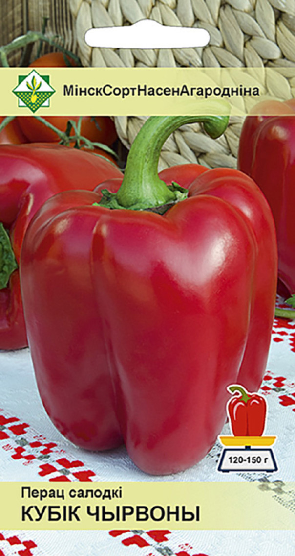 Перец Кубик-К Кубик Красный (Беларусь) - среднеспелый сорт белорусской селекции. Растение высотой 60-70 см. Плоды кубовидной формы, массой 120-150 г, в технической спелости темно-зеленые, в биологической – темно-красные. Толщина мякоти 6-8 мм. Дегустационная оценка 4,5 балла. Универсального назначения. Для возделывания в теплицах или под укрывным материалом. Созревает несколько раньше сорта Калифорнийское чудо.
