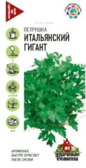 Петрушка листовая Итальянский гигант 2г Удачные семена (Россия) - среднеспелый (от всходов до технической спелости 90 дней) сорт листовой петрушки с сильным приятным ароматом. Подходит для круглогодичного выращивания. Можно выращивать как горшечную культуру. Розетка листьев полувертикальная, высотой 67 см. Лист крупный, зеленый, гладкий, нежный. Зелень хорошо отрастает после срезки. Масса зелени одного растения до 75 г. Урожайность зелени до 2,8 кг/кв.м.