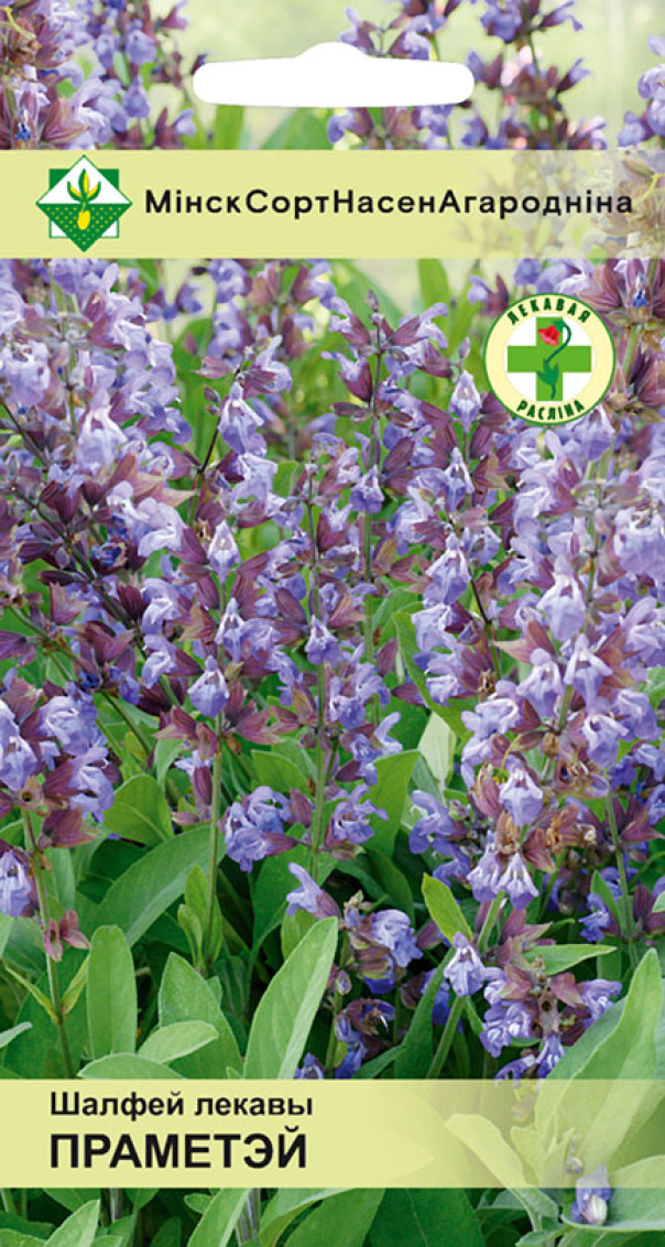 Шалфей лекарственный Прометей 0.2г (Беларусь) - многолетнее лекарственное и декоративное растение высотой 50-70 см. Обладает сильным противовоспалительным и дезинфицирующим действием. Листья применяют при простуде, при воспалении желчного и мочевого пузыря, для полоскания рта и горла. Используют и как приправу. Отличный медонос. Выращивают прямым посевом семян в грунт или рассадой. На одном месте растет 5-6 лет. Для хранения убирают в начале цветения и сушат в тени. На зиму требует легкого укрытия.