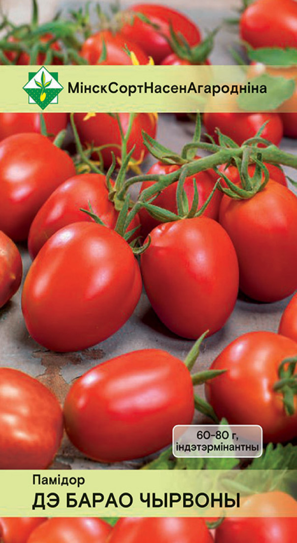 Томат Де Барао красный (Россия) - среднепоздний сорт с обильным и продолжительным плодоношением для теплиц. Растение индетерминантное, высотой более 2 м. Плоды сливовидной формы, красной окраски, гладкие, плотные, долго хранятся без потери товарных и вкусовых качеств, массой 60-80 г. Универсального назначения. Подходит для цельноплодного консервирования. Устойчив к пониженной освещенности и фитофторе. Требует регулярного пасынкования.