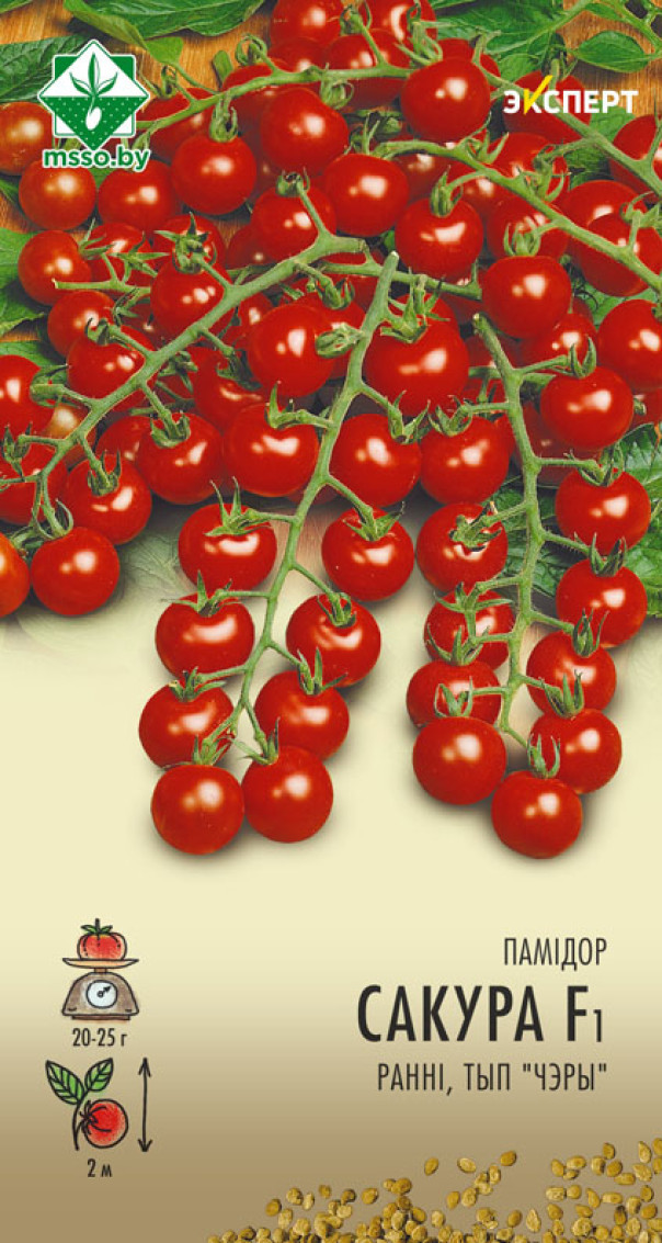 Томат Сакура F1 Эксперт (Нидерланды) - ранний гибрид голландской селекции с превосходными вкусовыми качествами и привлекательным товарным видом. Растение индетерминантное, высотой около 2 метров. Плоды округлой формы, темно-красные, плотные, массой 20-25 граммов. Формирует от 15 до 20 плодов в кисти. Подходит как для сбора кистями, так и отдельными плодами. Для потребления в свежем виде и цельноплодного консервирования. Рекомендован для выращивания в защищенном грунте.