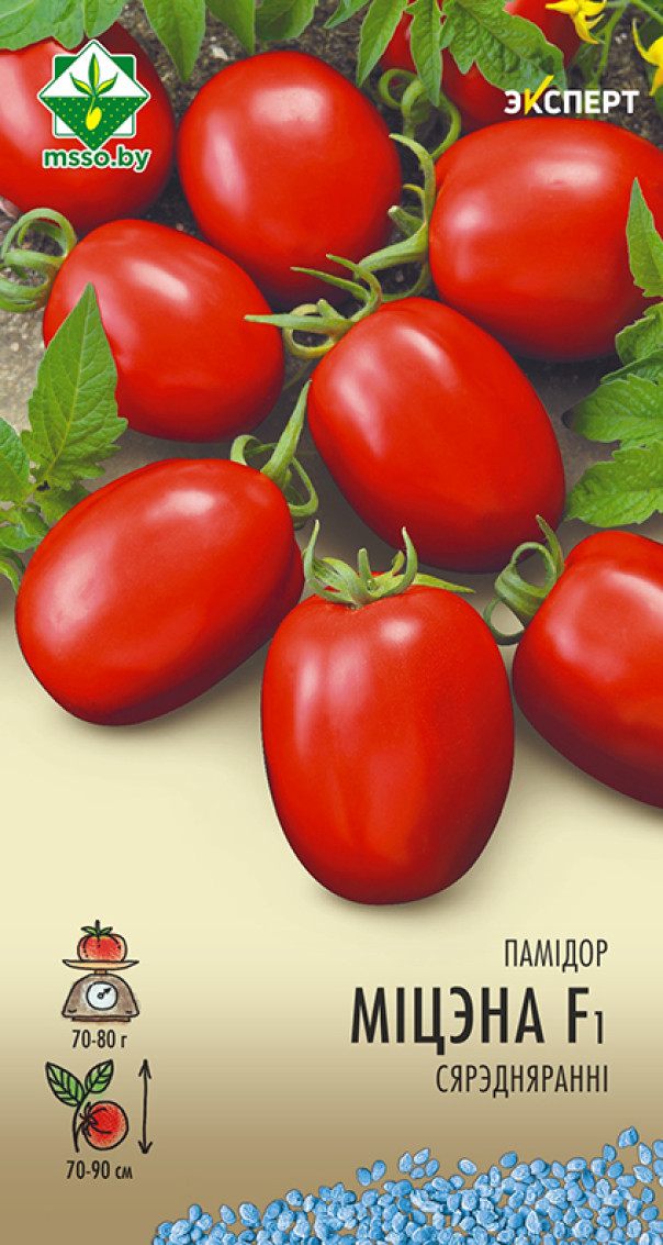 Томат Мицено F1 Эксперт (Нидерланды) - среднеранний гибрид голландской селекции. Растение детерминантное, хорошо облиственное, высотой 70-90 см. Плоды ярко-красные, кубовидно-овальной формы, выравненные, отличных вкусовых качеств, массой 70-80 г. Характеризуется очень высокой урожайностью, устойчивостью к болезням, неприхотливостью в выращивании. Универсального назначения, идеален для цельноплодного консервирования. Рекомендован для открытого грунта.