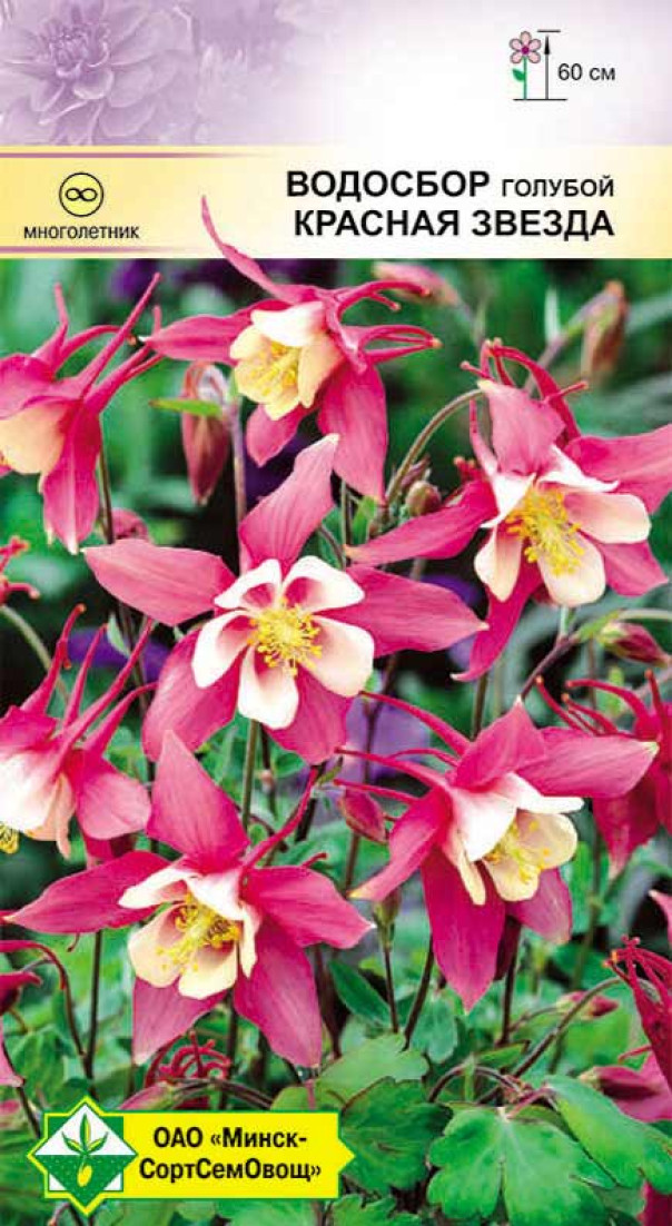 Водосбор голубой аквилегия Красная звезда 0.05г (Германия) - изящное многолетнее растение высотой около 60 см. Сорт с ажурными серо-зелеными листьями и привлекательно окрашенными цветками. Цветки оригинальной колокольчатой формы, в диаметре 5-7 см. Для посадок среди деревьев и газонов, срезки. Выращивают посевом семян непосредственно в грунт в конце апреля - мае или делением куста (весной и осенью). Предпочитает полутенистое место. Зимует без укрытия.