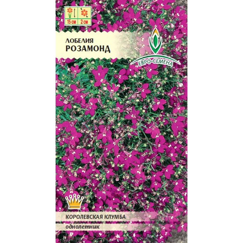 Лобелия Розамонд 0,02 гр однолетник (Россия) - многолетнее растение с тонкими ветвистыми стеблями и мелкими листьями, выращиваемое в России как однолетник. Сорт относится к форме компактная, образует плотный округлый компактный кустик высотой до 15 см, цветущий очаровательными карминно-розовыми цветками с белым глазком. Растение теплолюбивое, светолюбивое, но отлично растет и в полутени. Почва должна быть с достаточным увлажнением, рыхлая, предпочтительно суглинистая или супесчаная. Полив обязателен. Семена при посеве не заделывают, так как они нуждаются в освещении. Используется для оформления альпийских горок, клумб, бордюров и контейнерной культуры.