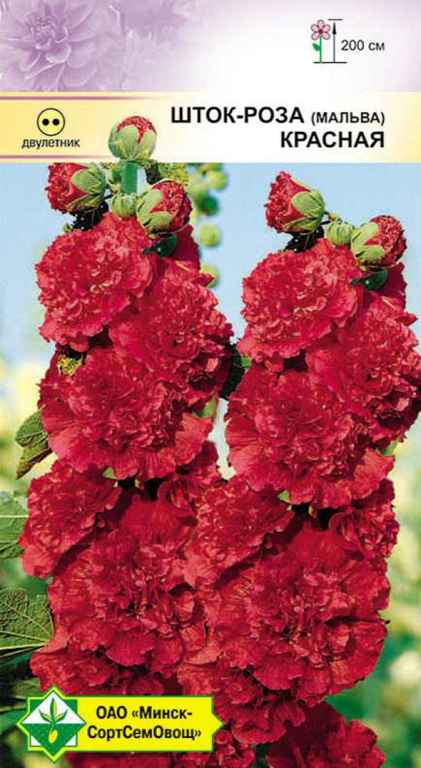 Шток-роза Красная Мальва 0.2г (Германия) - двулетнее растение высотой до 2 м. Цветки ярко-красные, махровые, в диаметре 10-12 см, собраны в изящные колосовидные соцветия. Для декорирования оград и зданий, прекрасно смотрится на заднем плане цветника. В букете сохраняется до 10 дней. Семена высевают в конце мая - начале июня. На постоянное место пересаживают с комом земли в конце августа. Хорошо зимует при легком укрытии. Засухоустойчива.