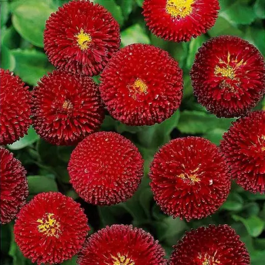 Маргаритка помпонная красная 0.05 г (Польша) - популярные миниатюрные маргаритки высотой до 15 см. Многочисленные соцветия диаметром до 2,5 см с перьевидными «лепестками» разнообразной окраски. Цветёт в апреле-июне. Универсальное использование: как почвопокровное растение, для обрамления клумб, балконных ящиков, альпинариев.