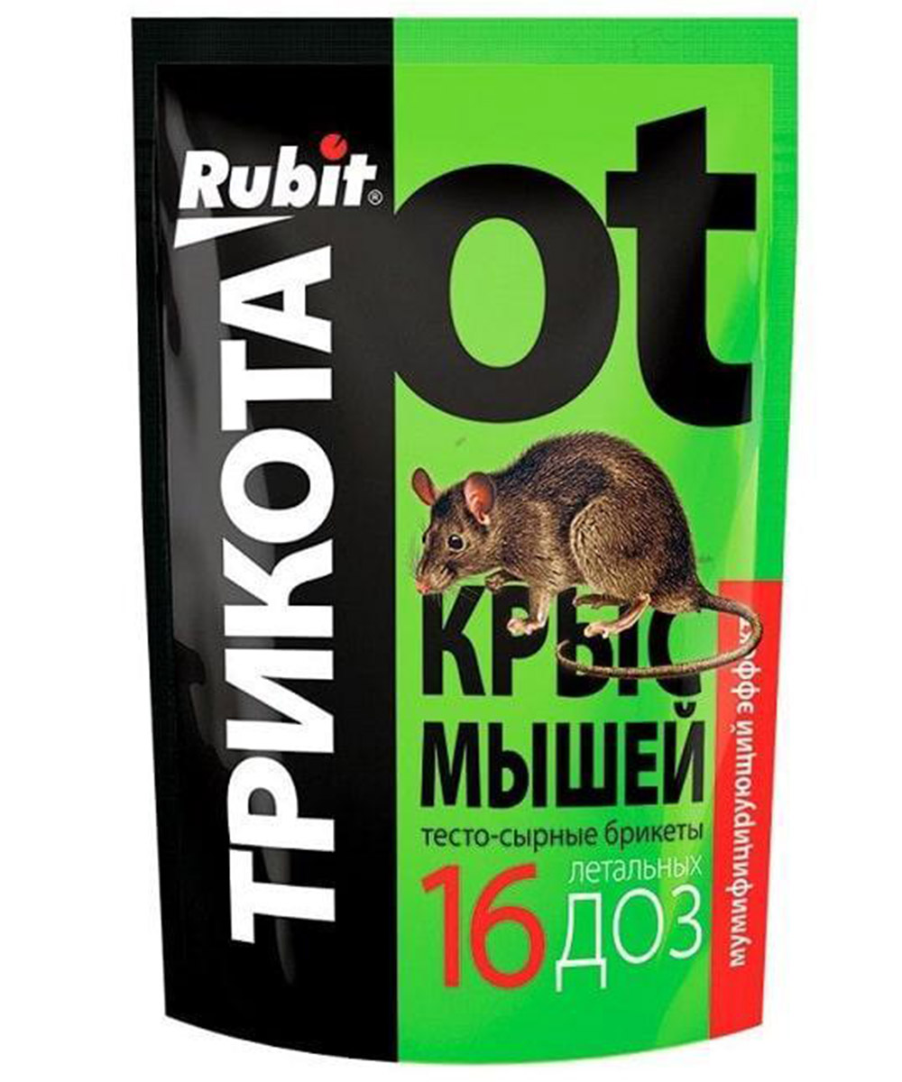 Родентицит "ТриКота" Rubit тесто-сырные брикеты от крыс и мышей, 150 гр. (Россия)
