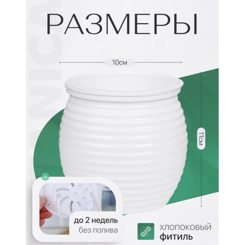 Горшок с автополивом Botanica Honey 10*11см белый (Китай) - это не просто элемент интерьера, а настоящая находка для любителей растений и удобства.