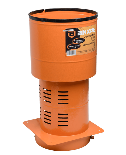 Измельчитель зерна ЗД-400К Вихрь (Россия) – это специальный аппарат, мощностью 1550 Вт, применяемый для измельчения зерна при приготовлении сыпучих кормов. Принцип работы устройства базируется на перебивании зерна специальным ножом с последующим просеиванием через сито, благодаря чему удается добиться относительно однородной фракции. Максимальная производительность – 400 кг/ч.