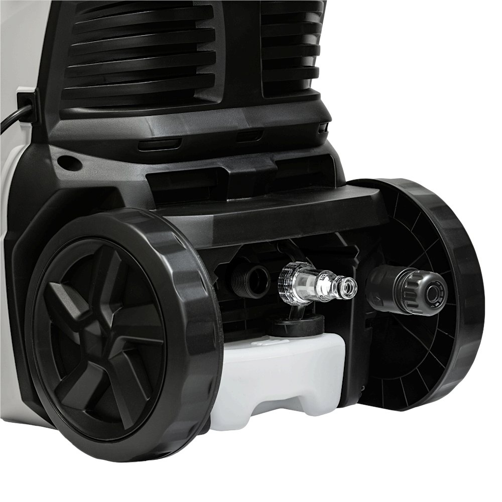 - Съёмный и встроенный пеногенераторы дают возможность выбирать удобный способ нанесения пены и настраивать её под конкретную задачу благодаря регулировке подачи моющего средства.