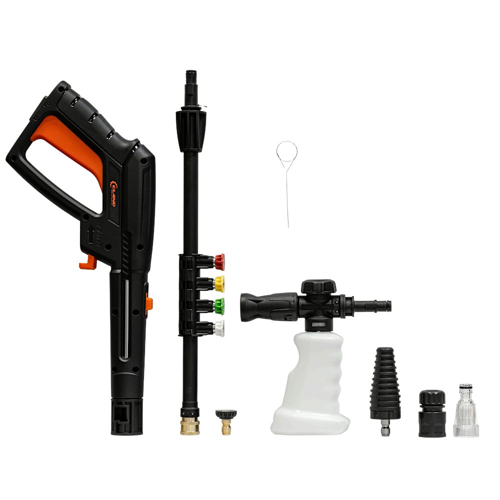 - Богатая комплектация включает фильтр для воды, комплект насадок, пеногенератор и переходники, что позволяет приступить к работе сразу после покупки.
