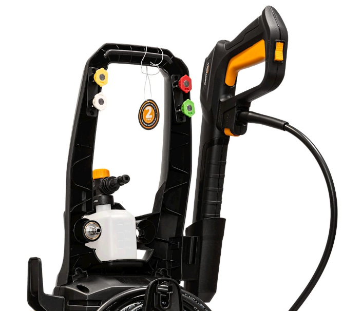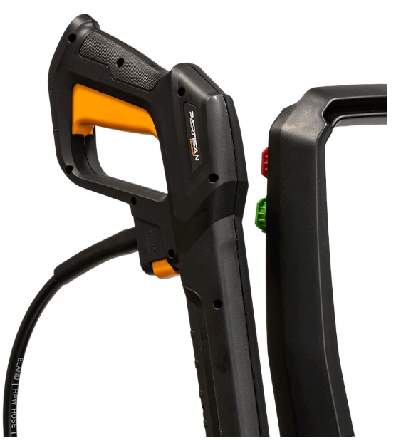 - Удобная система хранения аксессуаров обеспечивает надежную фиксацию пеногенератора, форсунок и грязевой фрезы в легкодоступном месте.