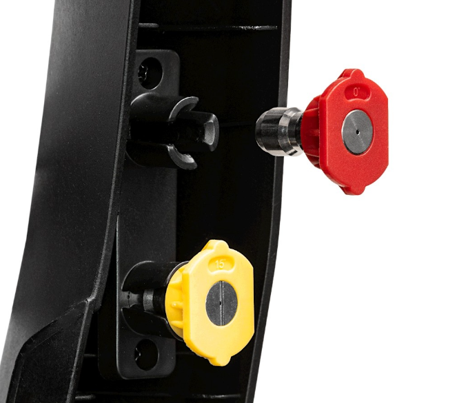 - 4 сменные насадки с разными углами распыла (0°, 15°, 25°, 40°) позволяют адаптировать инструмент под любую задачу.