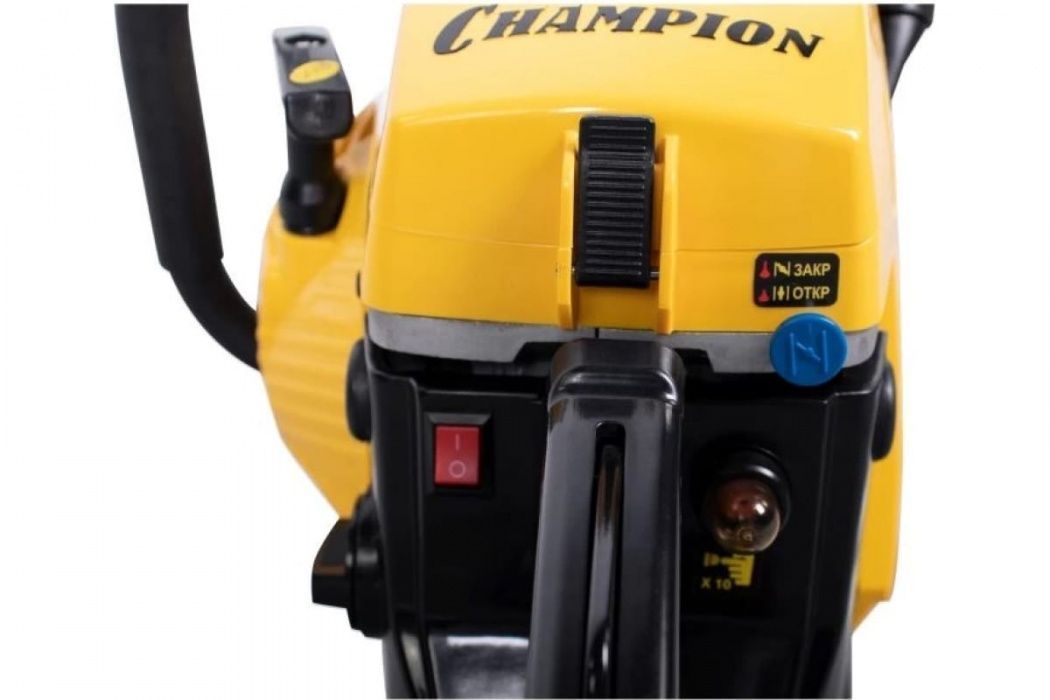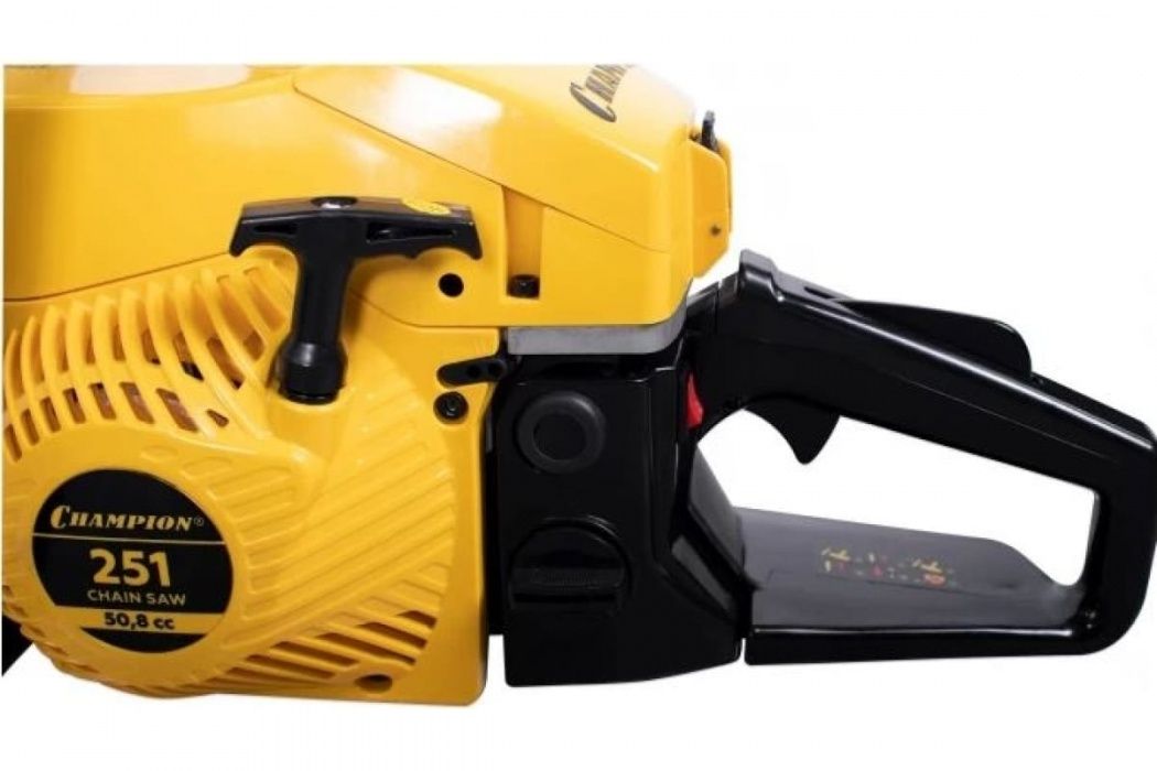 Бензиновая цепная пила 2,3 кВт 15"-0,325-1,5-64, 50,8см.куб легкий старт 251-15 Champion (Китай) – мощная бензиновая модель позиционируемая производителем как профессиональная. Мощность двухтактного мотора пилы составляет 3,13 лошадиные силы, а длинна полотна достигает 45 см. Натяжение цепи боковое, сама шина имеет четыре точки крепления ведомой звездочки. Стартер у пилы ручной с системой легкого запуска, упрощающей продергивание шнура кик стартера на 30%.
