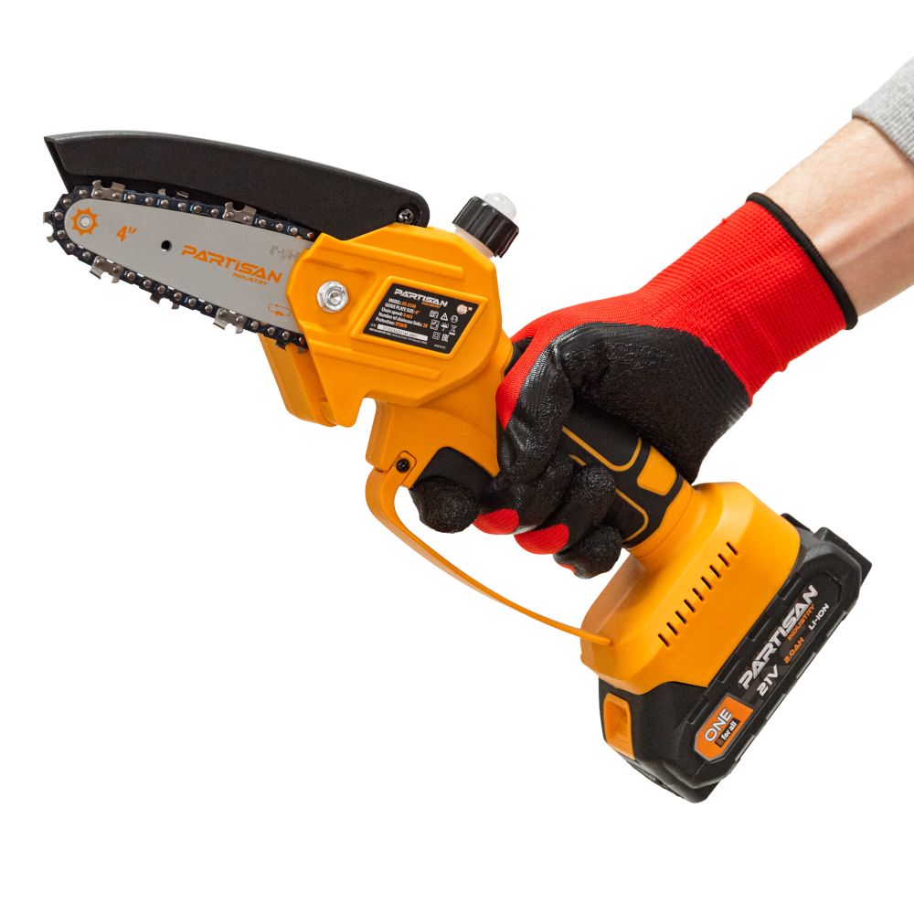 Пила цепная мини аккумуляторная AS-2144 PARTISAN (Китай) - предназначена для обрезания веток деревьев толщиной до 50 мм. Для распила деревянных заготовок, досок и деревосодержащих материалов, толщиной не более 100 мм.