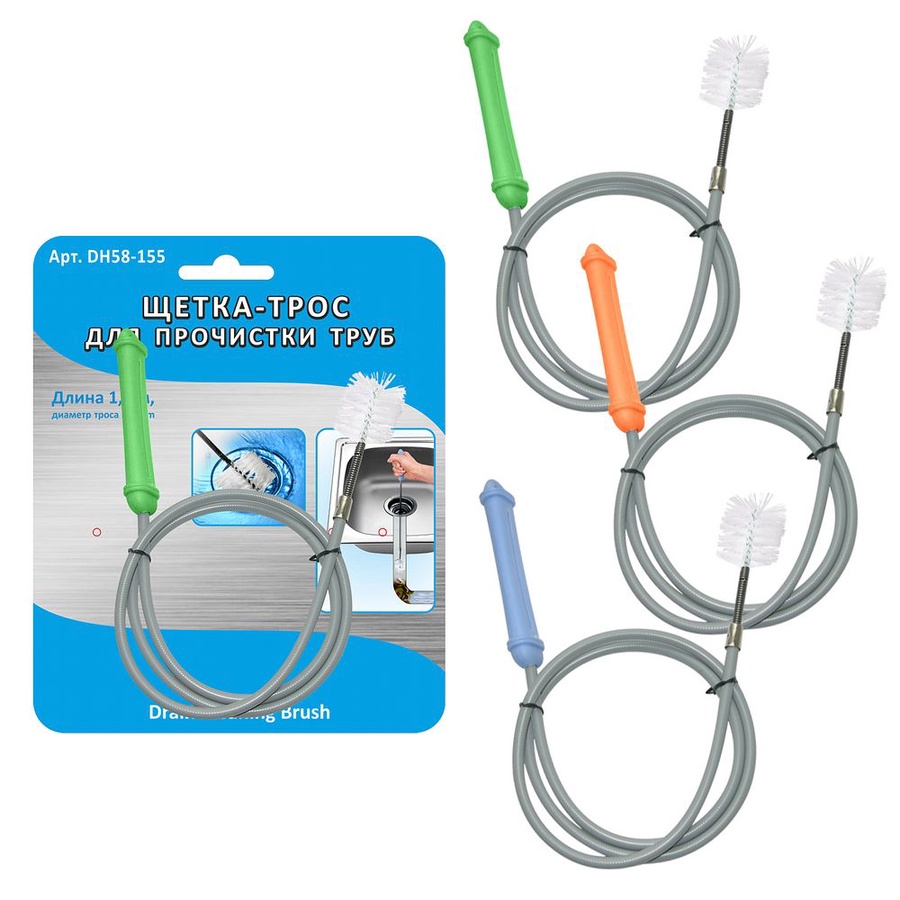 Трос для прочистки труб длина 1,2м диаметр 5,5мм (Китай) – отличное приспособление для преодоления засоров в домашних условиях. Изделие состоит из удобной пластмассовой рукоятки и троса с щеткой на конце. Трос изготовлен из стали с полимерным покрытием. Щетка состоит из мягкого синтетического материала и не царапает внутреннюю поверхность труб. Тросик не перекручивается во время использования, имеет длину 1,2 м и диаметр 5,5 мм.