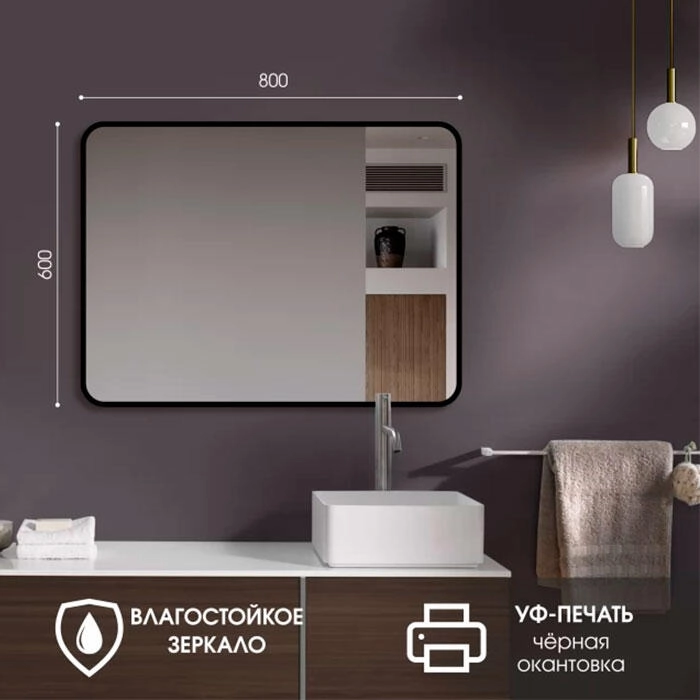 Зеркало Д-046 80*60 см с чёрной окантовкой, УФ-печать (Беларусь)