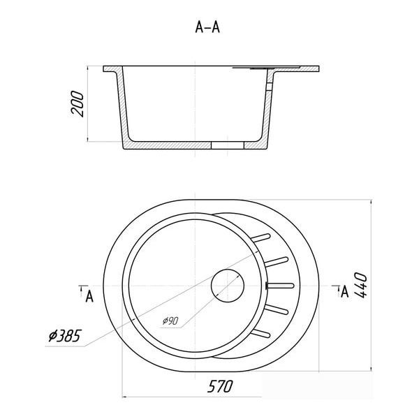 Мойка GERHANS A03-25 ОНИКС 575х440мм искусственный камень без сифона овал (Россия)
