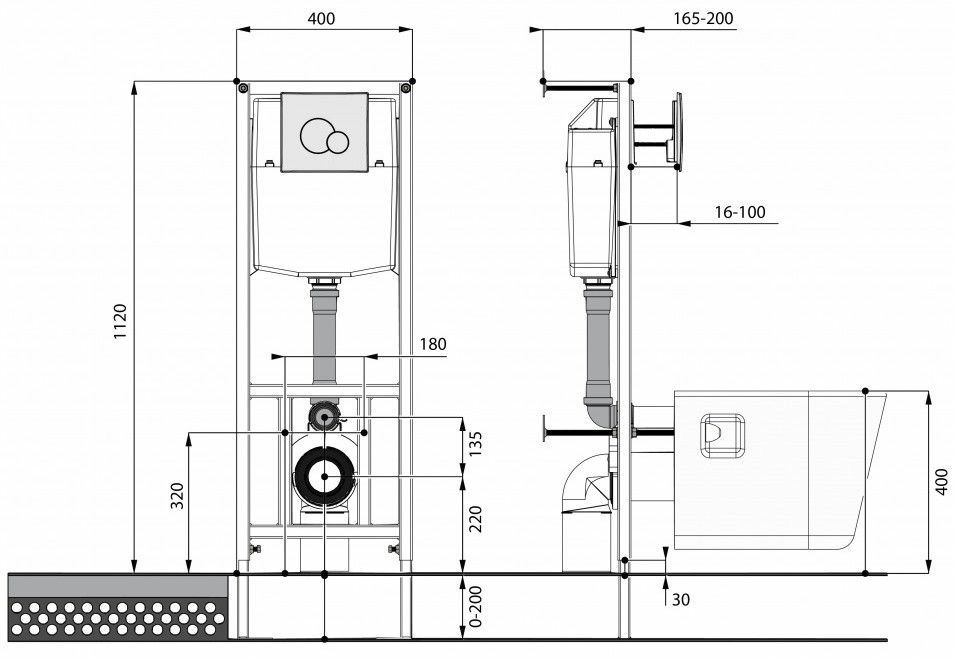 Подвесной унитаз + инсталляция + сиденье п/пропилен + панель белая ПЭК Santeri Альфа (Россия)