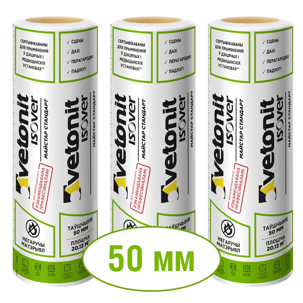 Утеплитель Ветонит Мастер Стандарт Твин 50мм 1220*8250мм 20,13м2 в рулонах Isover (Россия)