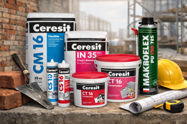 В рамках акции представлены клеи для плитки Ceresit CM16 и CM16 S1 Pro Flexible, подходящие для керамической плитки, керамогранита и сложных оснований. Для выравнивания стен и потолков доступны гипсовые шпатлёвки Ceresit IN 35 и Тайфун Мастер №33, обеспечивающие ровную поверхность под покраску или обои.