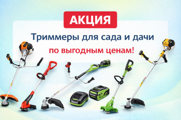 Следите за разделом акций, чтобы не пропустить выгодные предложения на садовую технику. Акция на триммеры — это удобная возможность купить надежный инструмент для ухода за участком и подготовиться к сезону с практичной и полезной техникой.